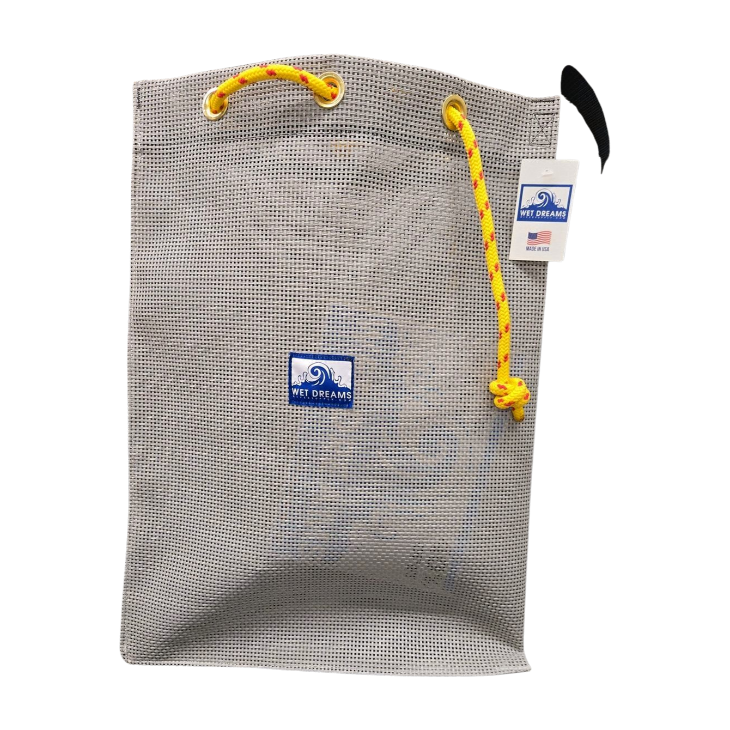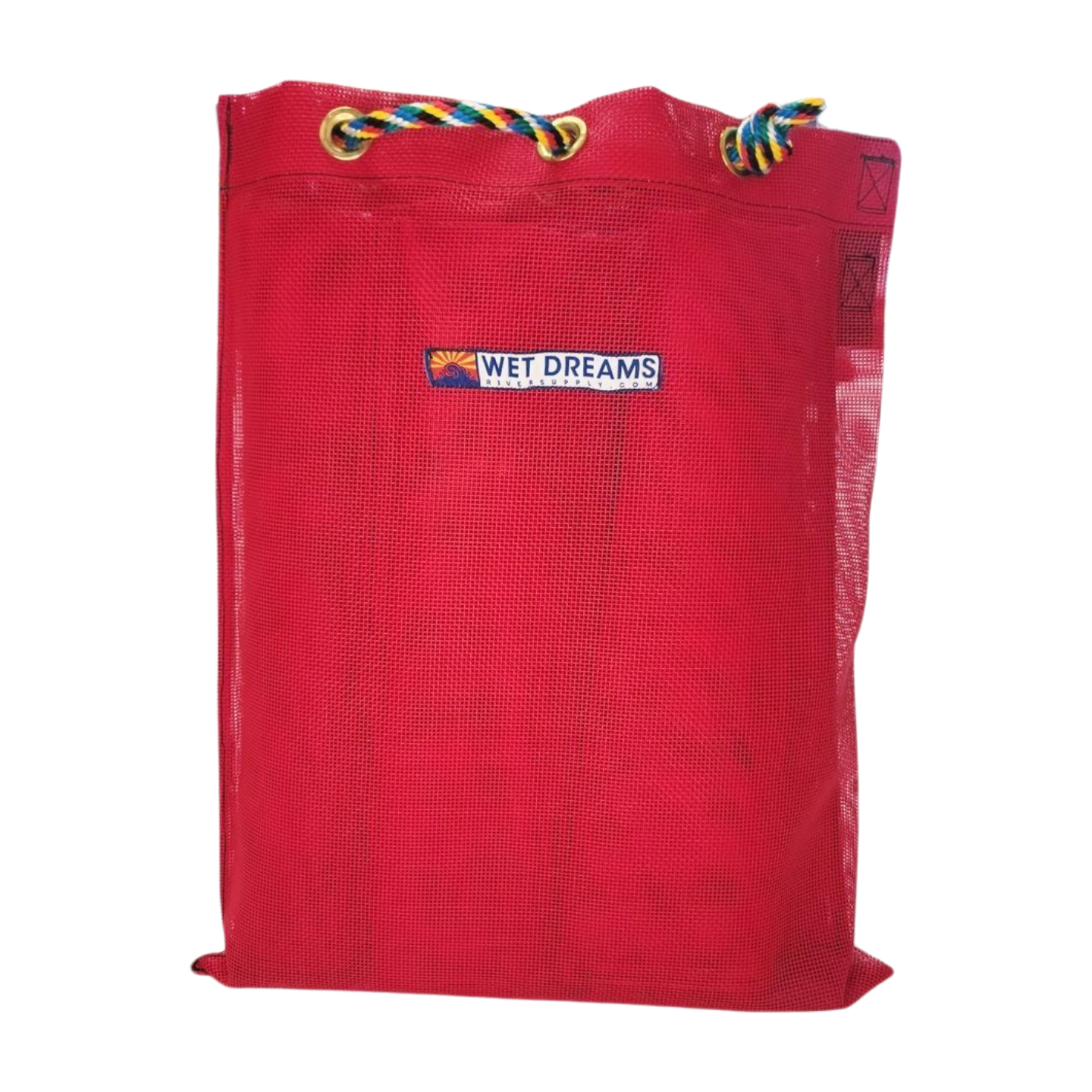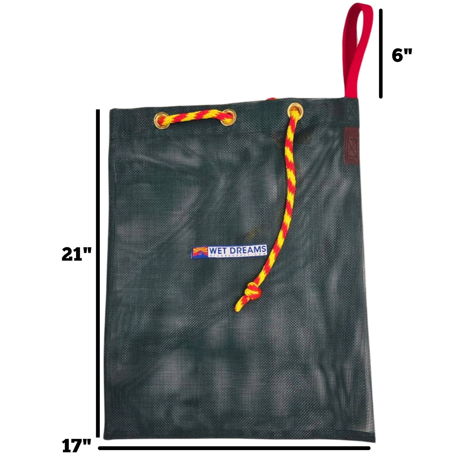 Standard Colors: Vinyl coated mesh, webbing handle, rope, and grommet closure