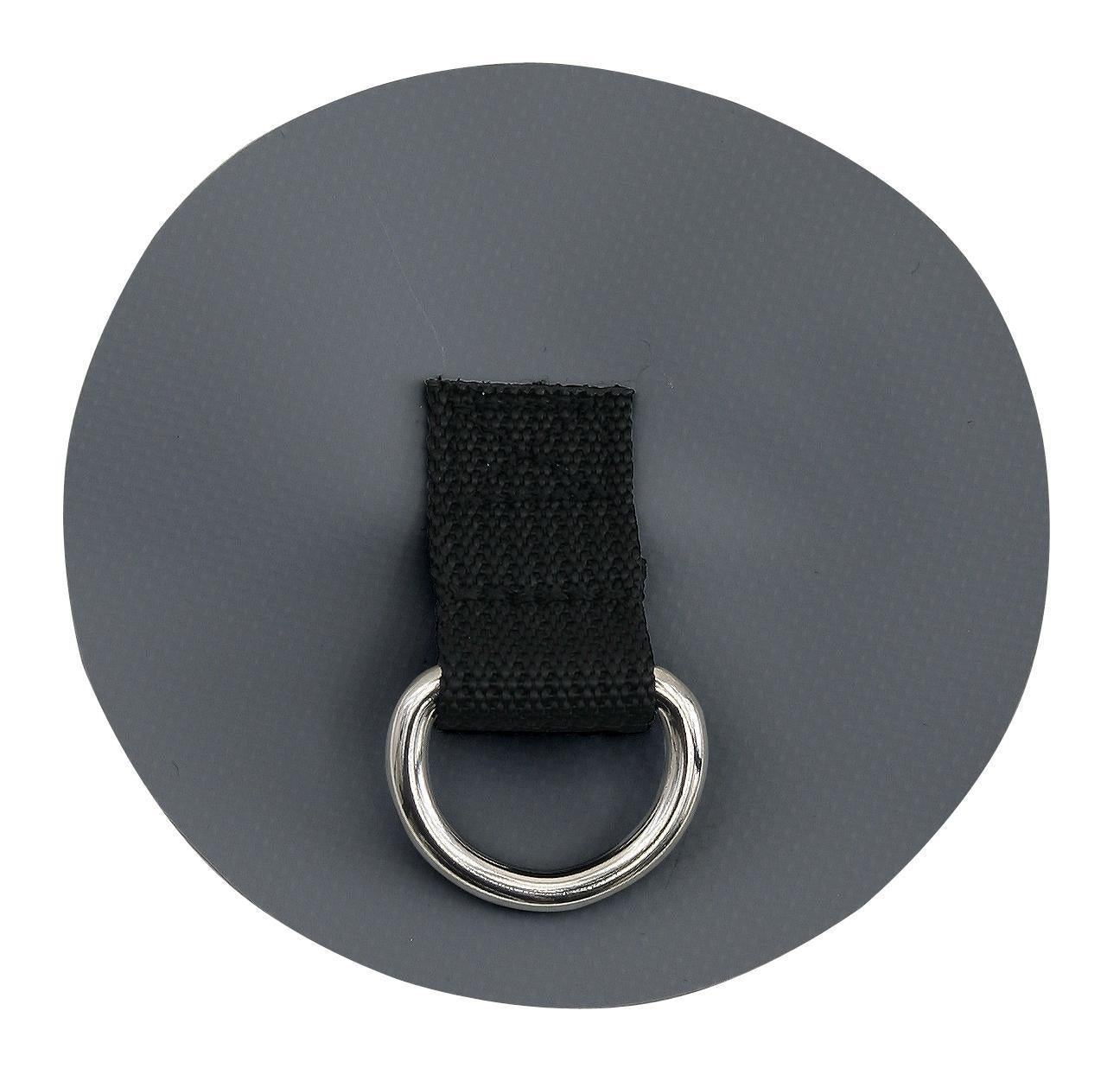 This patch with nickel-plated D-ring can be attached with Clifton Urethane Adhesive, Item # 38700.01, to dry bags and other PVC- or urethane-coated surfaces.