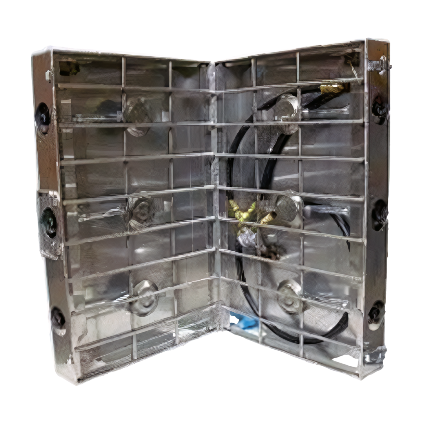 This folding stove is 26" wide, and has 6 burners. Burners are 9 1/2" apart. This stove is designed for use with our large stove stand for larger groups. 16 x 26 x 7 1/2. 29 lbs. Break-apart hinge is installed to make the controls more accessible and to allow more cooking versatility. All stoves come with a hose + regulator set.