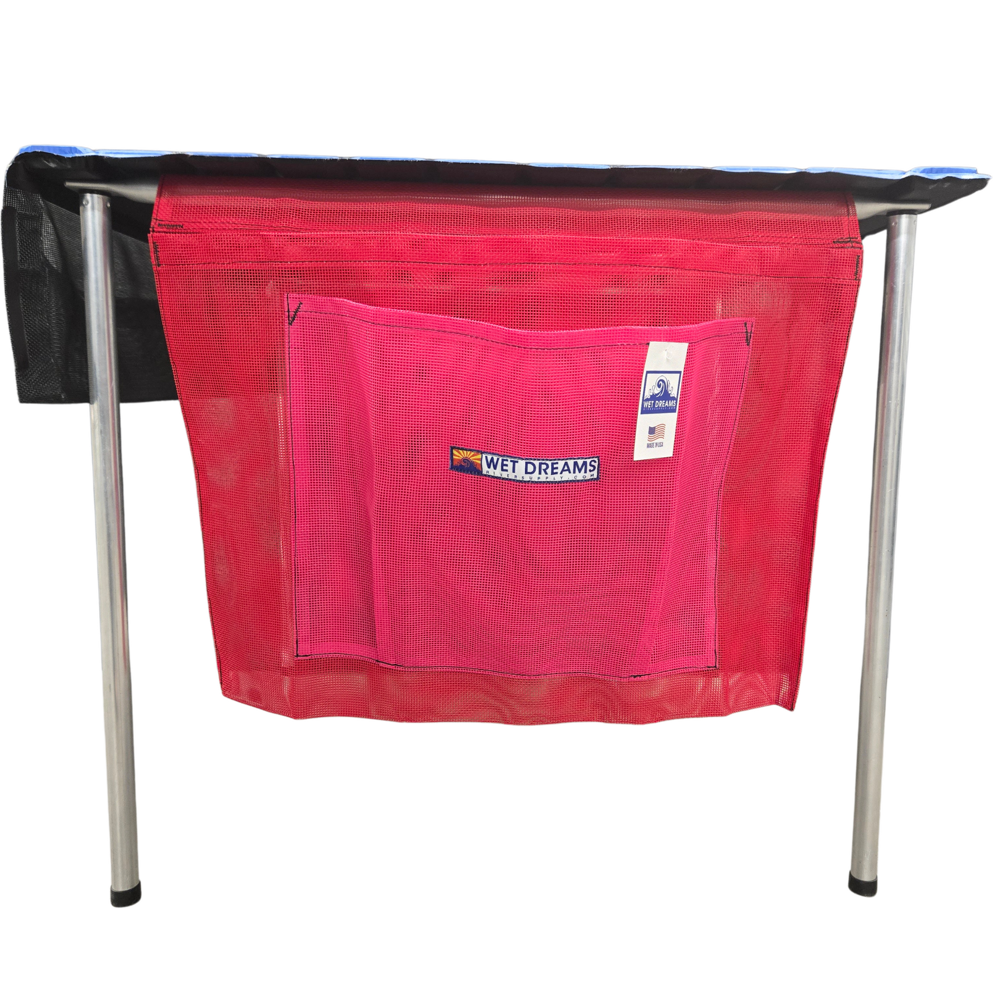 A necessary camp kitchen tool for any large group on the river. Available in 4 sizes. Gusseted body and pocket for easy access. Roll-A-Table style has a pole sleeve to hang off of the table, no cam buckles, vinyl coated mesh body, vinyl coated mesh pocket. Available in lots of colors - main color listed first and pocket color next.