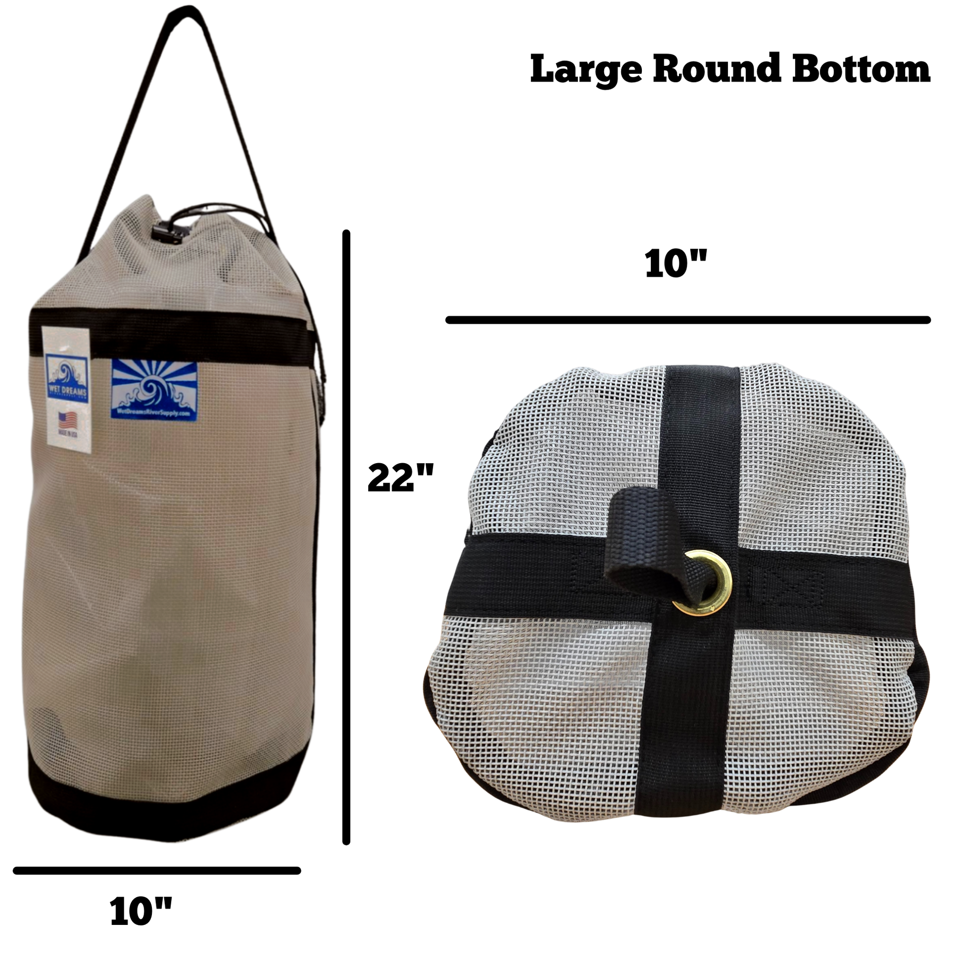 Wet Dreams employee preferred style of Drag Bag. Vinyl Coated Mesh, Reinforced Base, Drawstring Closure, Webbing Handle.