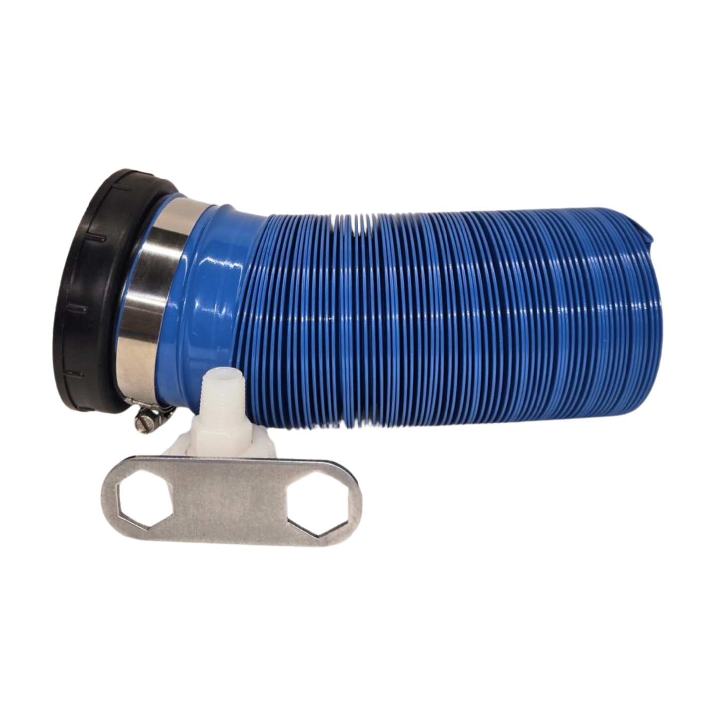 The Eco-Safe Toilets Complete Hose Kit includes one Eco-Safe Toilets Disposal Hose, one Eco-Safe Toilets Garden Hose Fitting, and one Eco-Safe Toilets Aluminum Wrench for use on Eco Safe Toilet Systems.