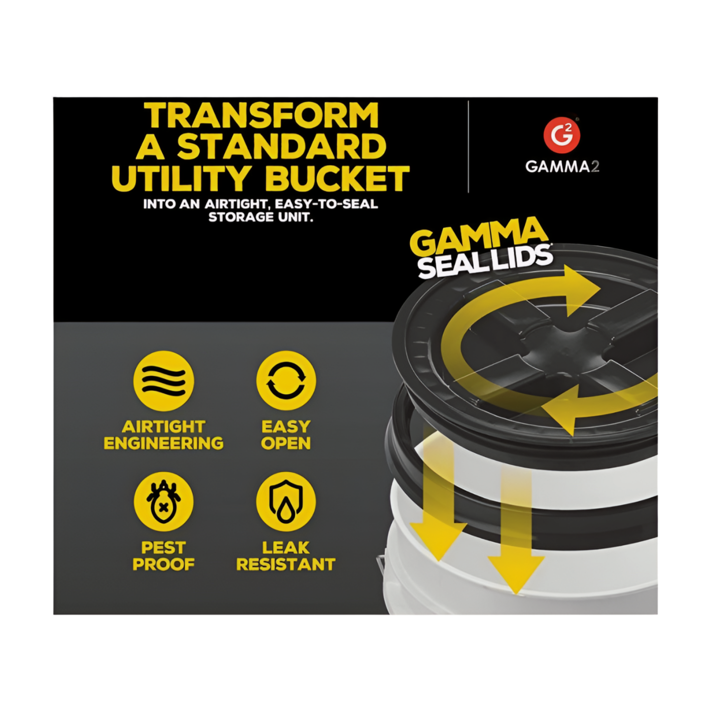 The Gamma Seal Lid fits 3.5, 4.25, 5 and 6 Gallon plastic buckets. It re-seals your bucket with an easy opening lid just spin off to open and spin on to close. The lid is approximately 12? in diameter, made with food grade plastic, and is BPA free. Assorted colors include black, red, orange, blue, white, and yellow.