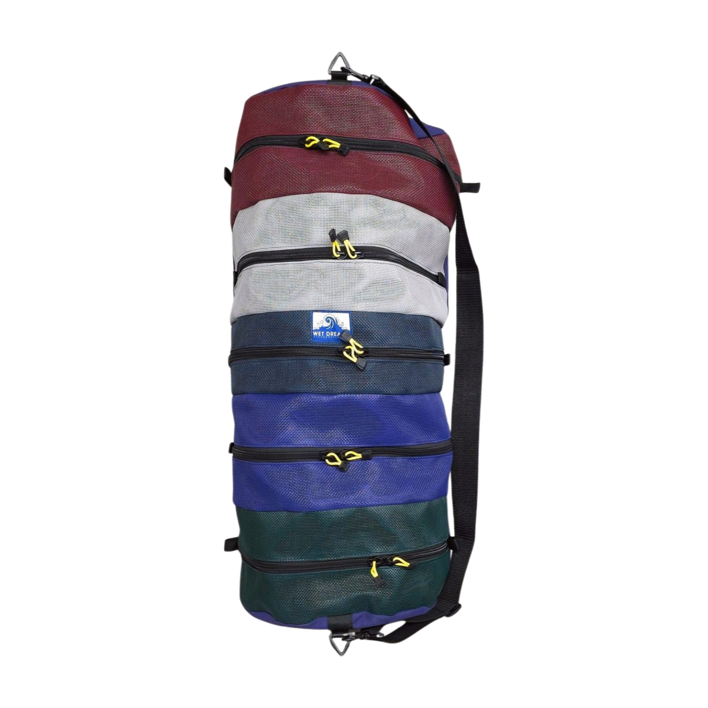 This is a 5 pocket bag designed to fit inside of a Watershed Mississippi. Each of the five compartments is made of two layer vinyl coated mesh top panels with two #10 zipper pulls. The base and dividers are made of 1000 Denier Nylon. Round ends have 1" webbing handles. Bag includes adjustable shoulder strap.
