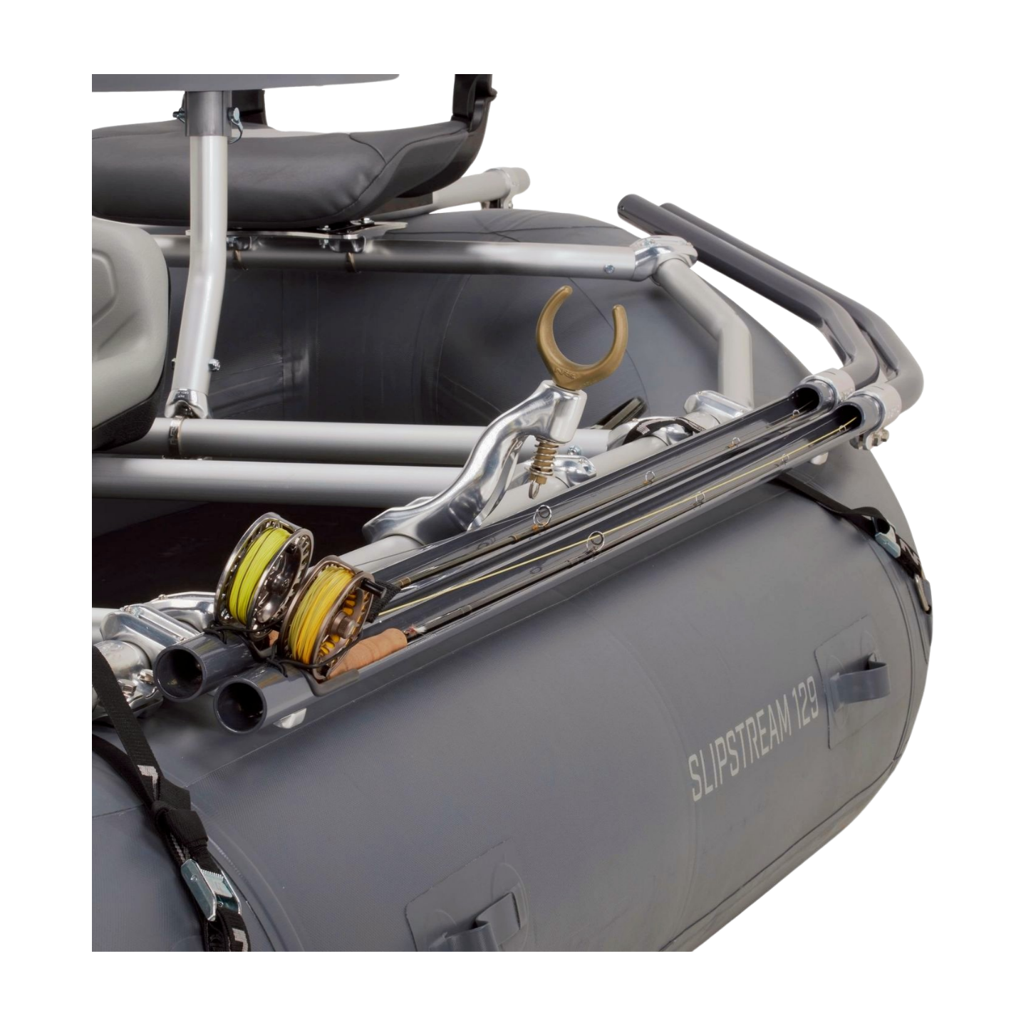 - Can be configured for assembly on either side of the raft and accessible to front or rear anglers.