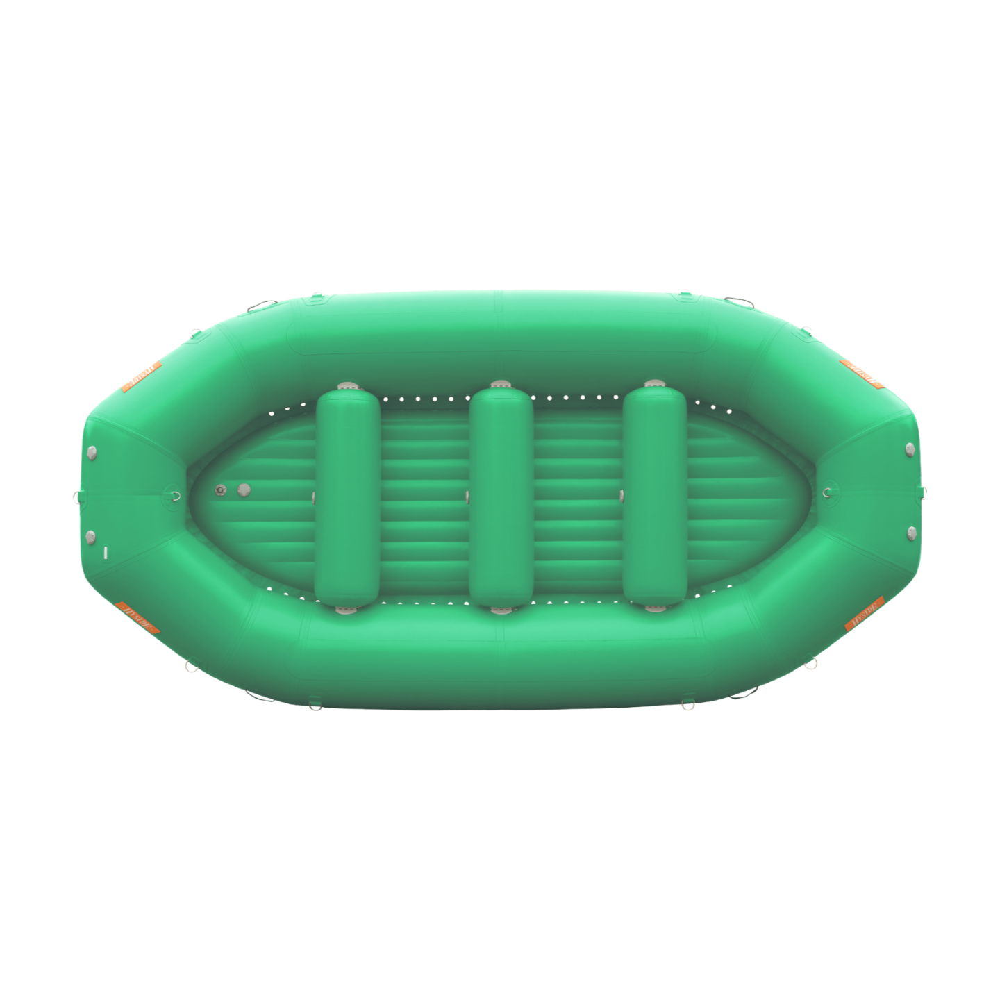 Looking for a 14 foot gear boat? Look no further! We added 2” to the tubes, an increase in the straight section and beam along with 5 additional d-rings to build the best 14er gear boat on the market. This boat does not stop there as it doubles as a fantastic, more stable, big water paddle boat as it comes included with 3 easily removable thwarts. Again, in general we recommend rowing with 9.5’ oars for a 14er. All boats with XT specs will have increased tube size and additional d-rings compared to base models.