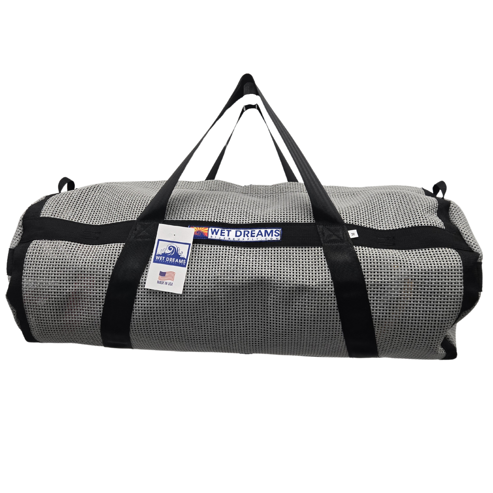 Wet Dreams Rig Bags are built from vinyl coated mesh and have handles on both sides. Burly #10 zippers with 2 slides and seat belt webbing carry handles. Unique to Wet Dreams bags the carry handles are ergonomically positioned to put even stress on the stitching. Our Rig Bags with Strap Organizers come in heavy duty, outfitter grade multi-color or gray mesh.