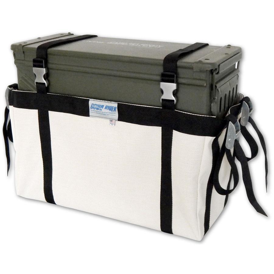The Down River Rocket Box Sling XD is built to withstand even the roughest outfitter use and abuse. This sling is designed to hang between the crossbars on your frame and store a 20mm Rocket Box. The Down River Rocket Box Sling XD is constructed using our strongest mesh: Xtra Duty (white). For this sling we also integrated our strongest side release metal buckles, allowing for quick in-n-out access. Add a couple of these to your rig for an ideal groover, dry goods, or captain's box storage system. Rig-to-Flip!