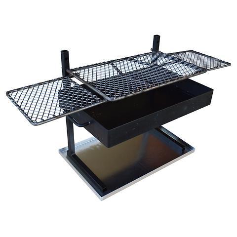 This Fire pan is a must have for any rafter or camper. It meets all forest service regulations for an off the ground fire. The wings can be pulled off and used for Dutch Ovens away from the fire or added to the grate for keeping food warm. Also a great place for seasoning and cooking tools.