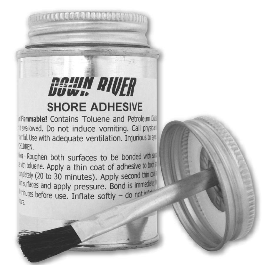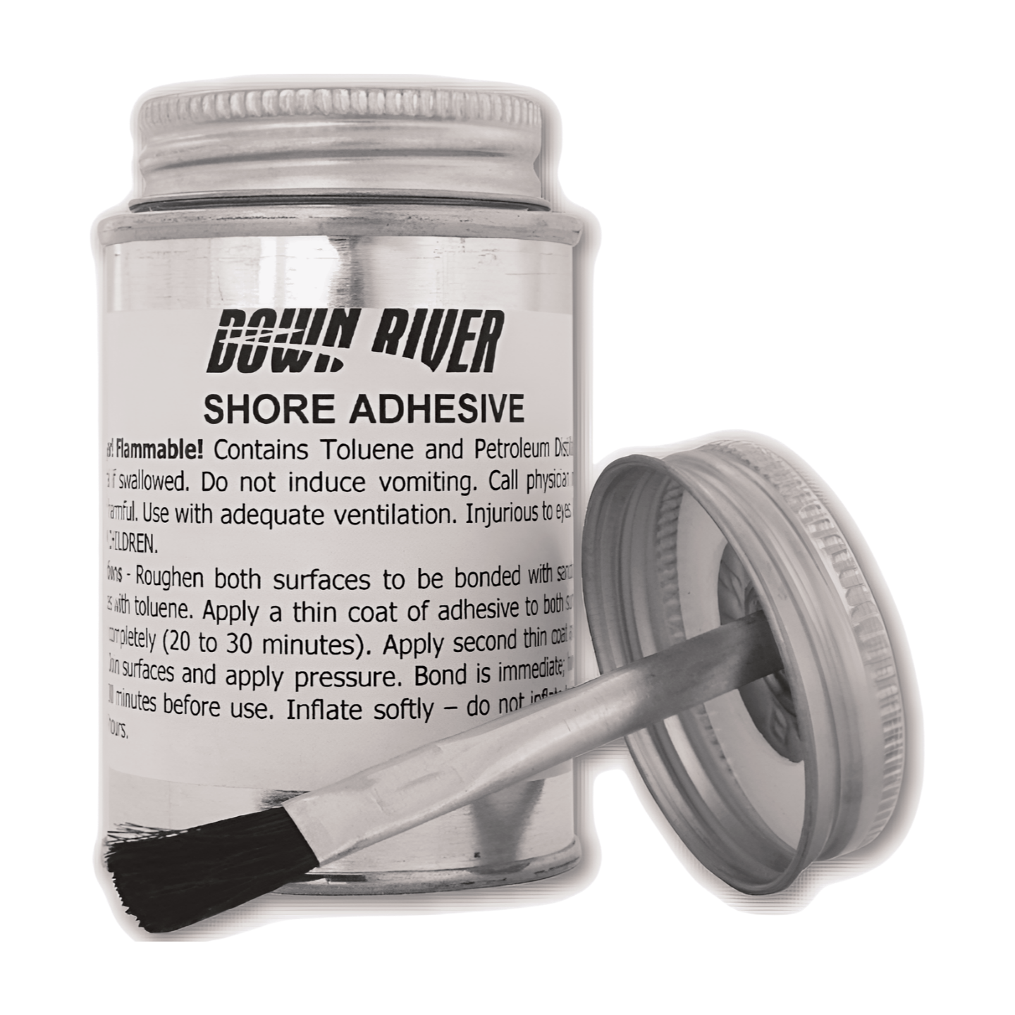 Shore Adhesive is a powerful single-part contact cement, and when used correctly, will attach patches and accessories to all Hypalon, fiberglass, Kevlar, and aluminum boats. Easy to use one-part formula. Available in 1/4 pint, 1/2 pint, pint, quart, or gallon canisters. We recommend adding Shore Adhesive to your repair kit for on-river repairs.