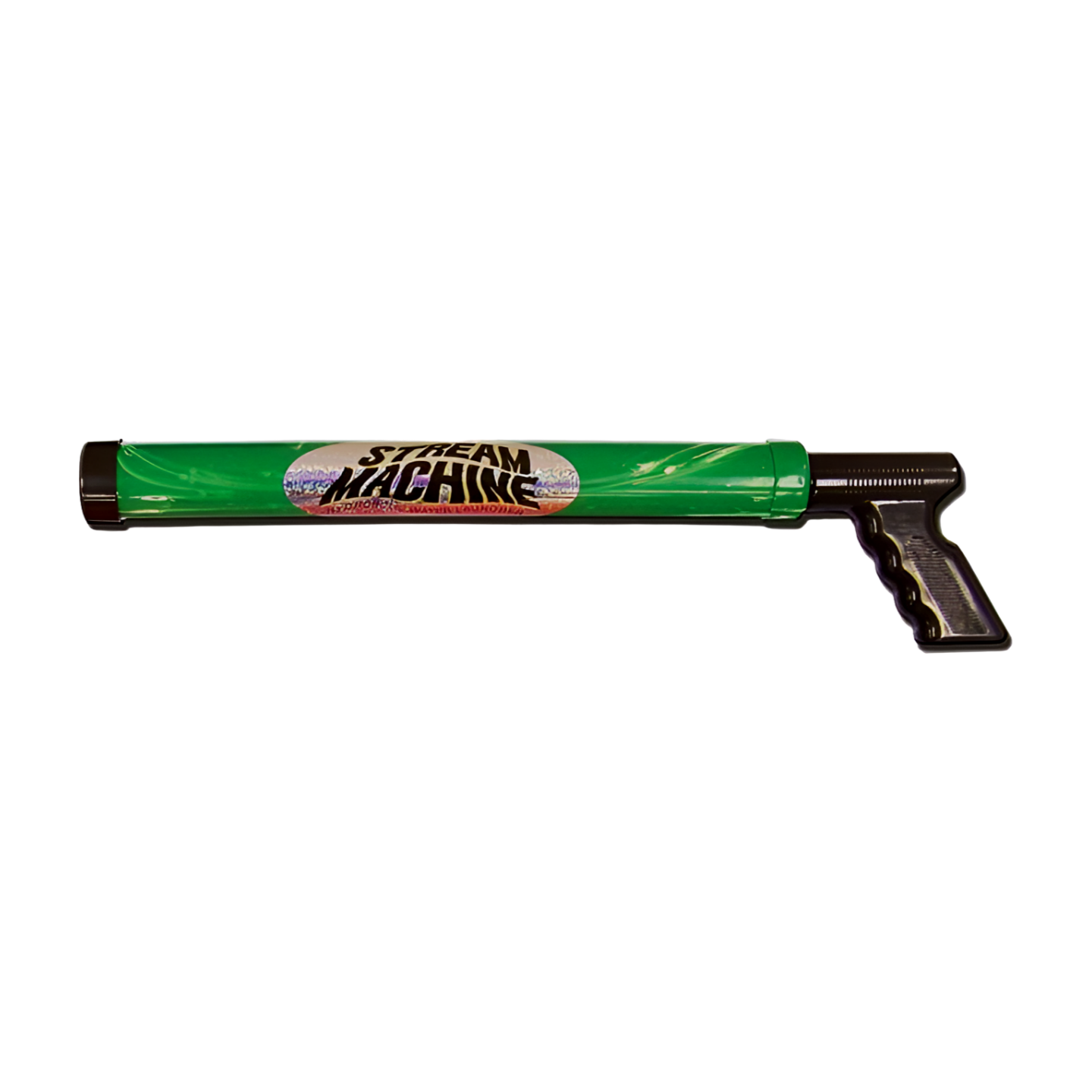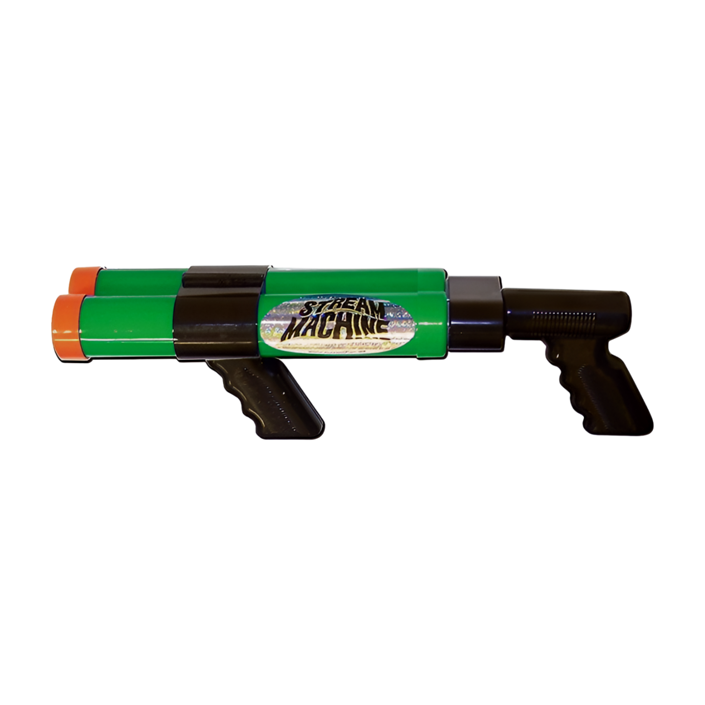 Get a grip and get wet with the Stream Machine. It's the ultimate water shooter able to shoot up to 70 feet! Each Stream Machine is made from high quality polymers. The colors are impregnated and will not chip or peel off. The Double Barrel shoots twice as much water in a single shot, up to 50 ft. The 750 is now lighted.
