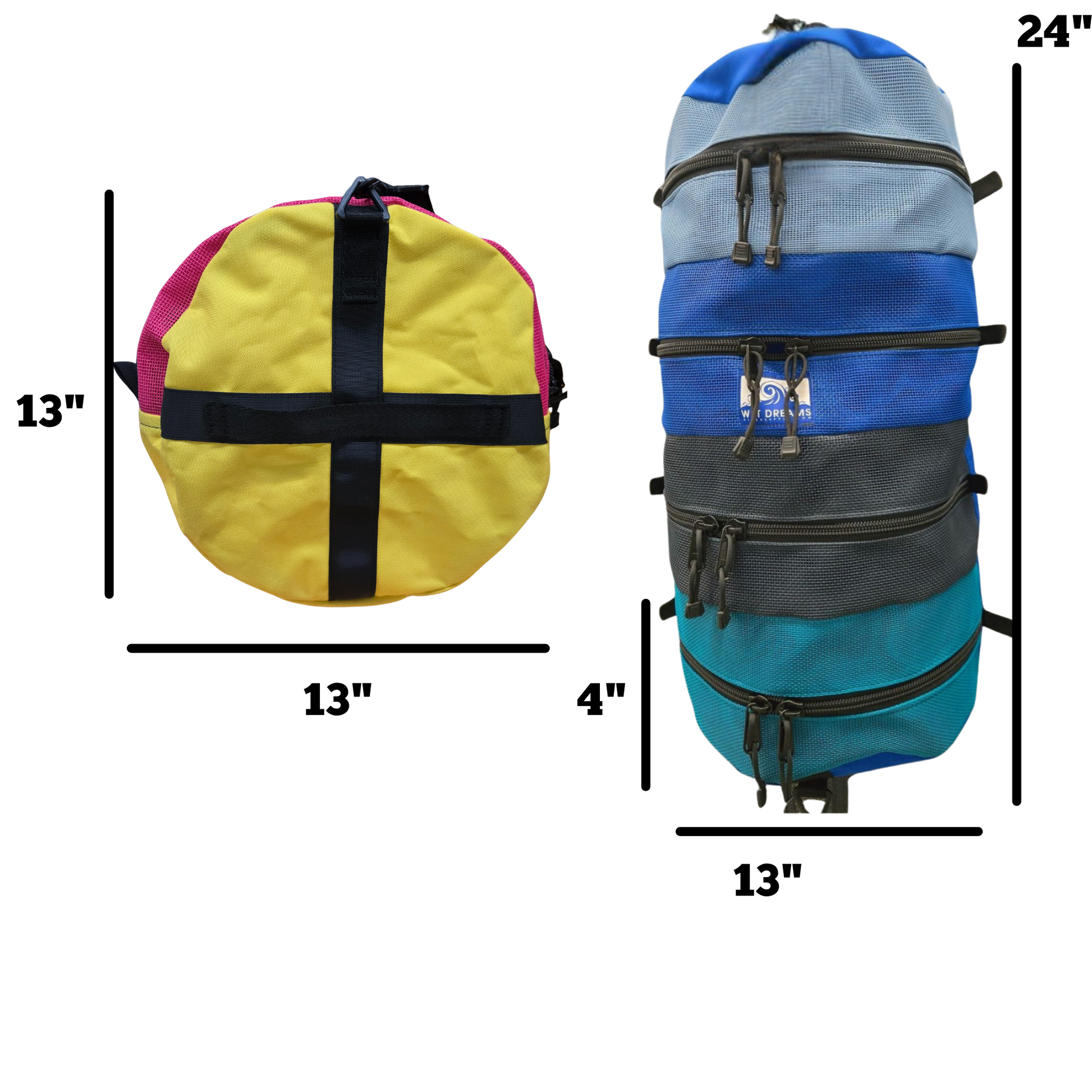 Designed to fit into the Watershed Yukon dry bag for better organization. Each of the four compartments is made of two layer vinyl coated mesh top panels with two #10 zipper pulls. The base and dividers are made of 1000 Denier Nylon. Round ends have 1" webbing handles. Bag includes adjustable shoulder strap.